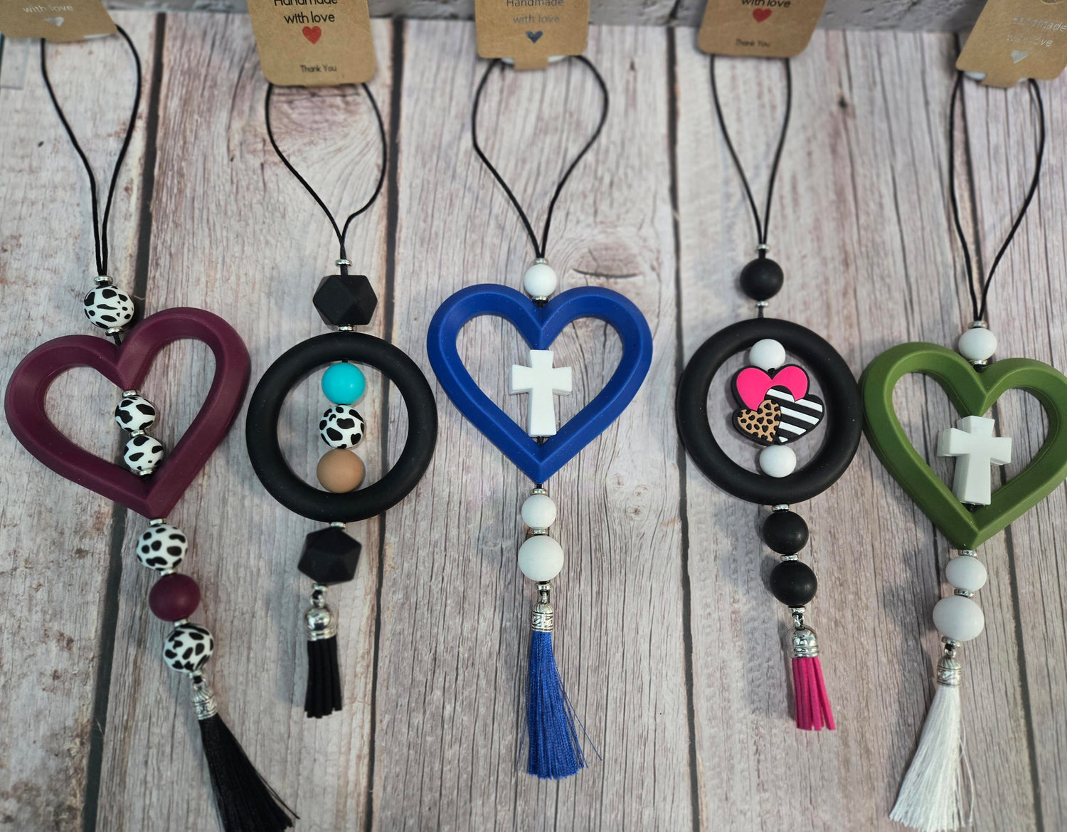 Custom handmade charms that attach to the rearview mirror with a breakaway...