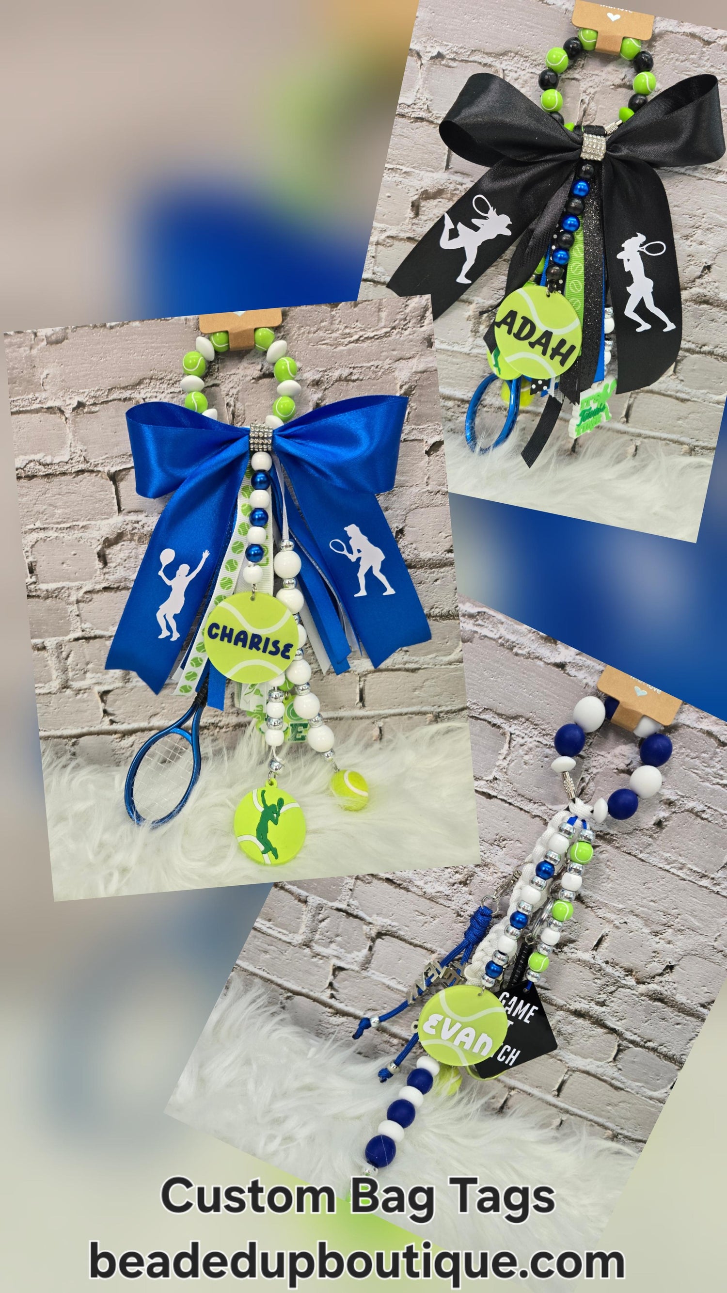 Include name for tag, colors, sport, and/or theme; select between ribbon style or keychain style in your custom order request.