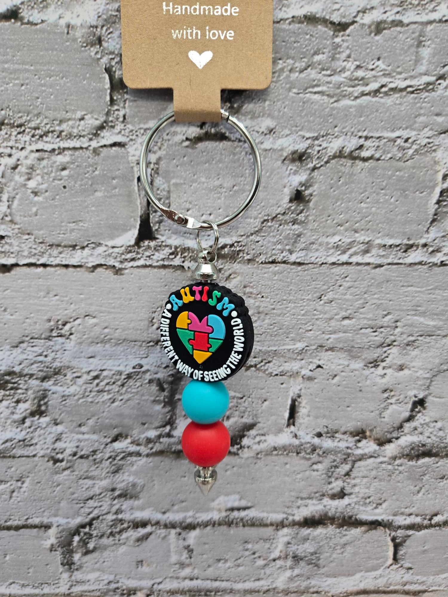 Custom beaded tumbler cup charm with Autism Awareness themed focal bead. Makes a perfect gift for that special person you know that wants to spread Autism Awareness. Attaches to tumbler handle with binder ring.