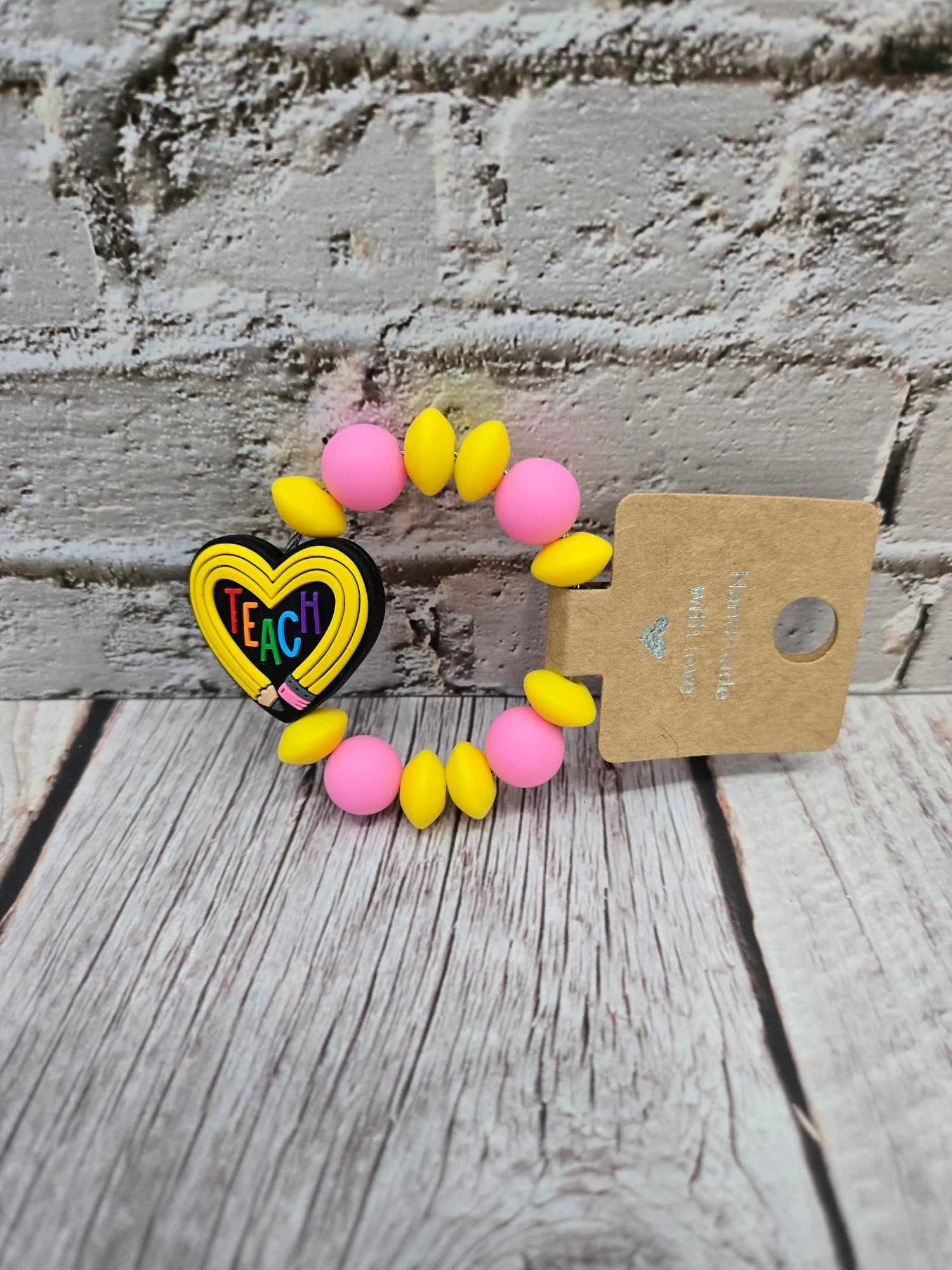 Custom beaded tumbler cup charm with a teacher themed focal bead. Makes a perfect gift for that special teacher you know. Attaches to tumbler handle with twisty keyring.